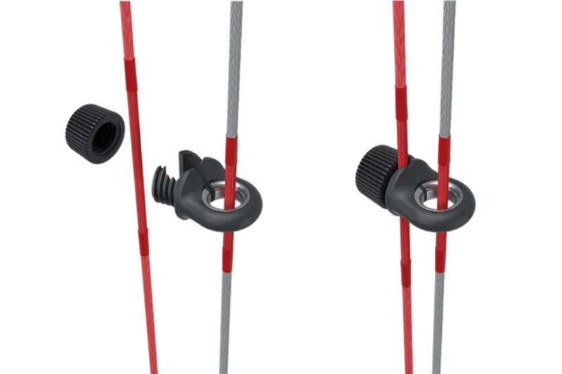 The Roto Head umożliwia łatwe odkręcenie linek po skokach z rotacjami czy kiteloopach. Wszystkie elementy wykonane są z wysokoodpornego plastiku, nie są podatne na korozję. System wykorzystuje dwie imbusowy śruby, które pozwalają na szybką wymianę linki depoweru. Po prostu użyj klucza do systemu FCS, wykręć śruby i zmień linkę depoweru