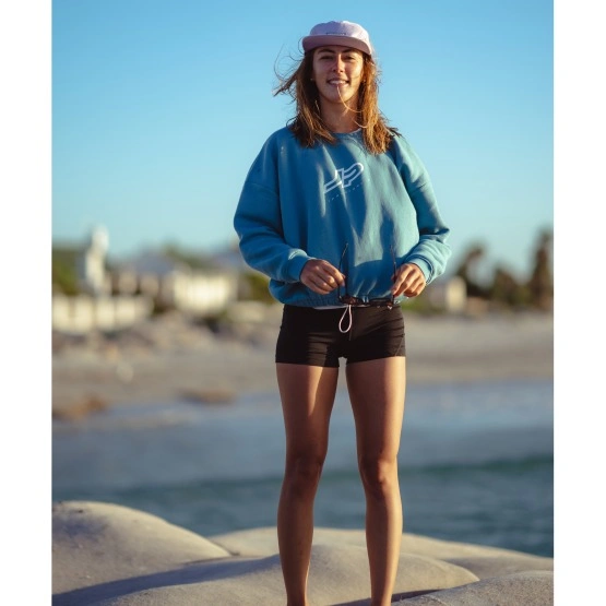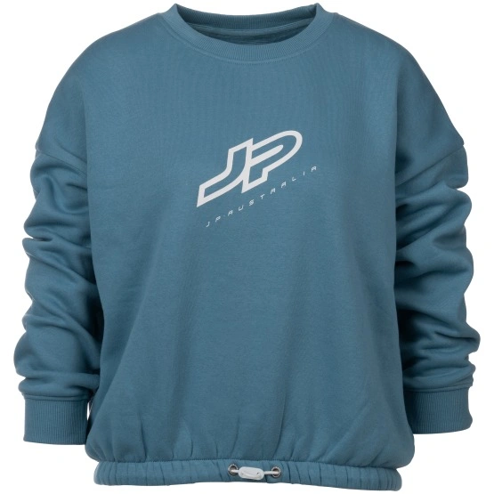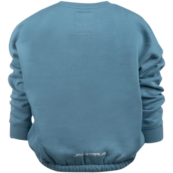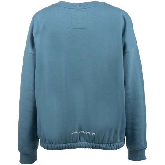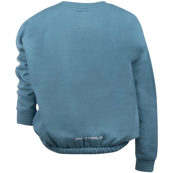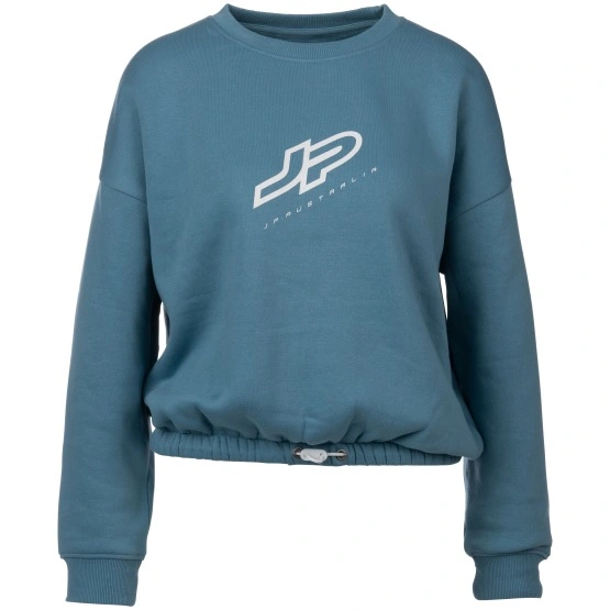 Nie do końca klasyczna bluza damska typu crewneck w kolorze niebieskim. U dołu wykończona ściągaczem z gumką, a od wewnątrz przyjemnym dla ciała misiem. Na klatce piersiowej duże logo JP, a na dole pleców delikatny napis JP-Australia. Materiał: 60% bawełna, 40% poliester
