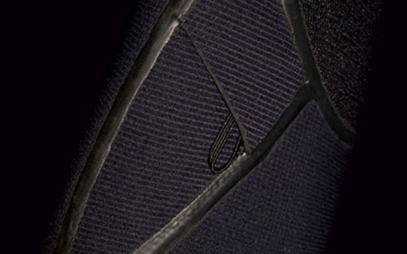 Mocny płaski ścieg, który tworzy się poprzez nakładanie się paneli neoprenowych i zszywanie ich razem. Zapewnia komfort, oddychalność i wytrzymałość