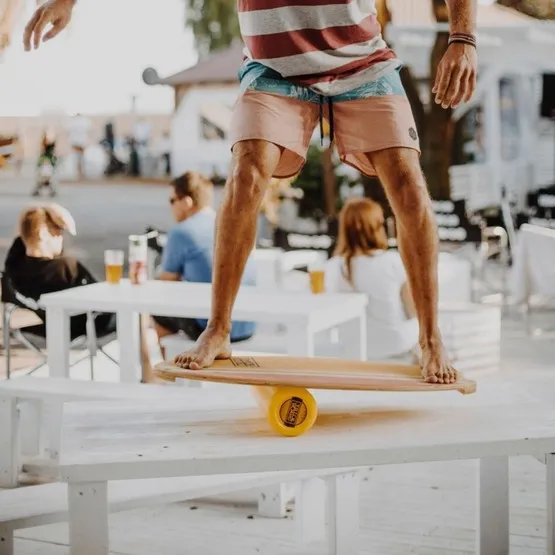 Deska do balansowania Trickboard Classic to funkcjonalny narzędzie treningowe, ale także gadżet, który zapewni dużo zabawy. Pomaga poprawić równowagę, zwinność oraz ogólną stabilność, które są istotnym elementami przy sportach gdzie balans to podstawa. Posiada niemiecki atest bezpieczeństwa TUV.
