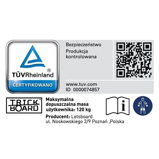Deski Trickboard wyróżnia certyfikat potwierdzający to, co najważniejsze — Twoje bezpieczeństwo! ID 000074857