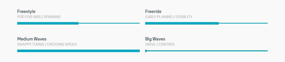 Maksymalny rocker umożliwia ciasne skręty na najbardziej stromych odcinkach, a okrągły kształt ogona zapewnia niezrównaną kontrolę przy dużych prędkościach.