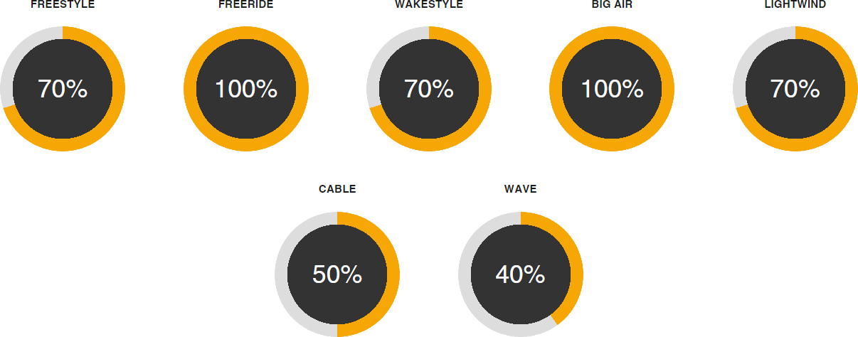 Ace Apex to najbardziej wszechstronna deska twintip w palecie Cabrinha. Sprawdzi się we freeride, freestyle i big air oferując nieprzeciętną kontrolę i super mocny pop. Odpala przy minimalnym wietrze i świetnie spisuje się na chopie. Zadowoli zarówno riderów, którzy szukają freerideowej deski tuż po zakończonym kursie, jak i dla zaawansowanych miłośników big air, którzy oczekują dynamicznego wybicia i długich lotów. Hybrydowa konstrukcja z zastosowaniem Carbonu.