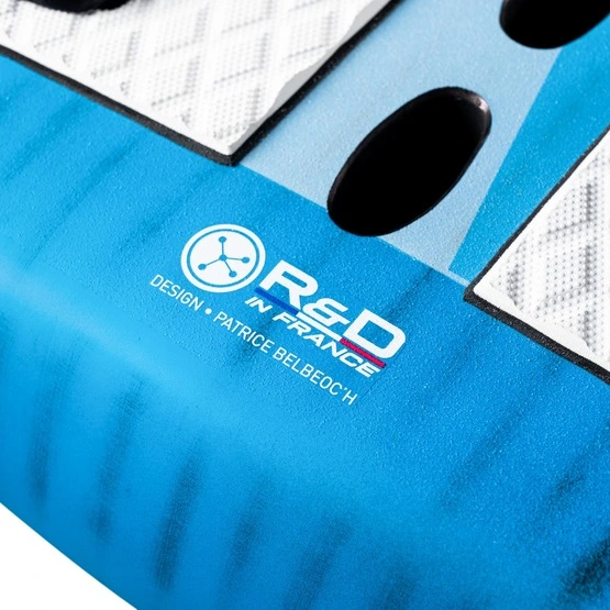 Pokład utrzymuje płaski profil na całej długości deski, z lekkim zakrzywieniem zarezerwowanym dla obszaru Footstrapów. Taki kształt sprzyja wygodnemu, naturalnemu ułożeniu stóp na pokładzie.