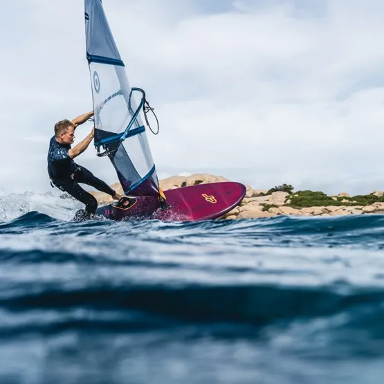 Mała długość i super kompaktowy feelingRównoległe krawędzie maksymalizują powierzchnię dna deski wynurzając deskę do ślizgu niemal natychmiastMasa skupiona blisko środka deski zapewnia lepszą kontrolę przy dużych prędkościachObniżenie pokładu przy skrzynce masztowej zmniejsza objętość deski i obniża środek ciężkości pędnika dając dodatkową kontrolę.Krzywizna dna i V zapożyczone z desek slalomowych dają komfort i stabilność podczas zwrotów. Deska ślizga się nieco wyżej nad wodą, dzięki czemu lepiej przebija się przez chop.Cienkie krawędzie pozwalają wykonywać ciasne zakręty. Podczas zmiany kierunku tracisz znacznie mniej prędkości.Cut-outy na rufie doskonale uwalniają wodę spod deski zmniejszając opór i poprawiając płynność jazdy.Kształt rufy i pokładu zapewniają dźwignię dla lepszego dociśnięcia krawędzi i poprawy osiągów szybkościowych.