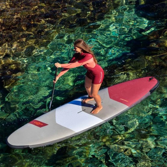 Duża długość i wyporność zapewniają doskonałą stabilność. Deska jest wyposażona w składany miecz, który zapewnia dodatkową równowagę i sprawia, że żeglowanie ostrym kursem na wiatr wymaga mniej wysiłku. Świetnie sprawdza się podczas wiosłowania na płaskiej wodzie lub podczas pierwszych sesji windsurfingu na płaskiej wodzie, ale można jej również używać przy niewielkich falach – w obu dyscyplinach sportowych.
