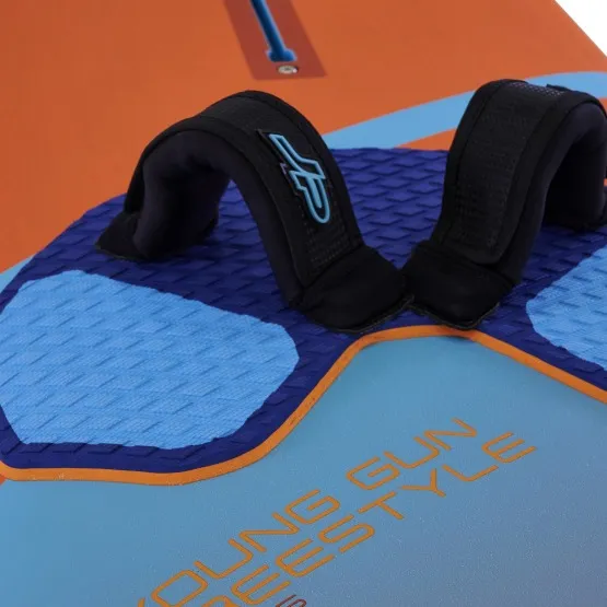 Po pierwsze w nowej desce projektant JP przesunął szynę masztową do tyłu, bliżej footstrapów dla lepszej reaktywności. Zmniejszył również odległość pomiędzy przednimi a tylnym strapem, co poprawia pozycję na desce i zwiększa kontrolę. Dodatkowo inserty również są bliżej siebie, ponieważ dzieci mają mniejsze stopy, zapewnia to lepsze trzymanie i więcej pewności siebie podczas manewrów. Jednak nie zapomniano też o tym, że dzieciaki rosną w różnym tempie, więc zwiększono ilość insertów, tak by móc ustawić deskę indywidualnie pod każdego. Kształt deski bazuje na modelu JP-Australia Freestyle sprawiając, że nareszcie każdy młodzik ma szanse na ćwiczenie bardziej zaawansowanych tricków! Young Gun Freestyle ma wszystkie cechy najnowszego kształtu Freestyle takie jak stabilność, szybkie wejście ślizg czy duży pop, ale to wszystko w kompaktowym opakowaniu.