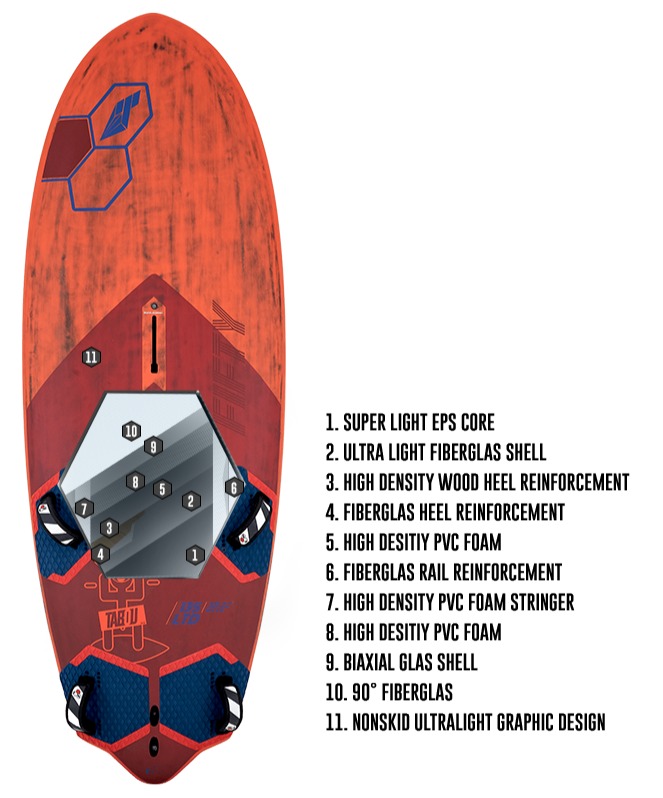 Wysoki rocker zapewnia bardzo szybki start i płynne lądowanie, gdy pływasz na foilu oraz świetną kontrolę podczas pływania z finem (co docenisz zwłaszcza na chopie). Szeroka rufa da Ci stabilność w szybkich ślizgach z finem, a w windfoilingu pozwoli lepiej dociążyć krawędź i zrównoważyć foila.