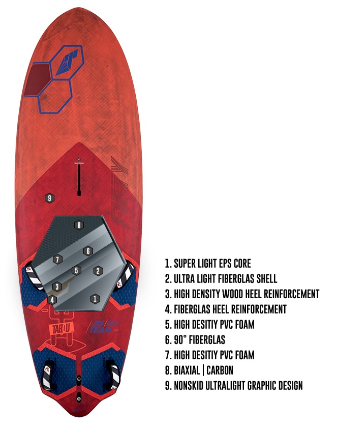 Profil pokładu został zaprojektowany tak, by zagwarantować Ci maksymalnie komfortową pozycję zarówno na foilu, jak i na finie