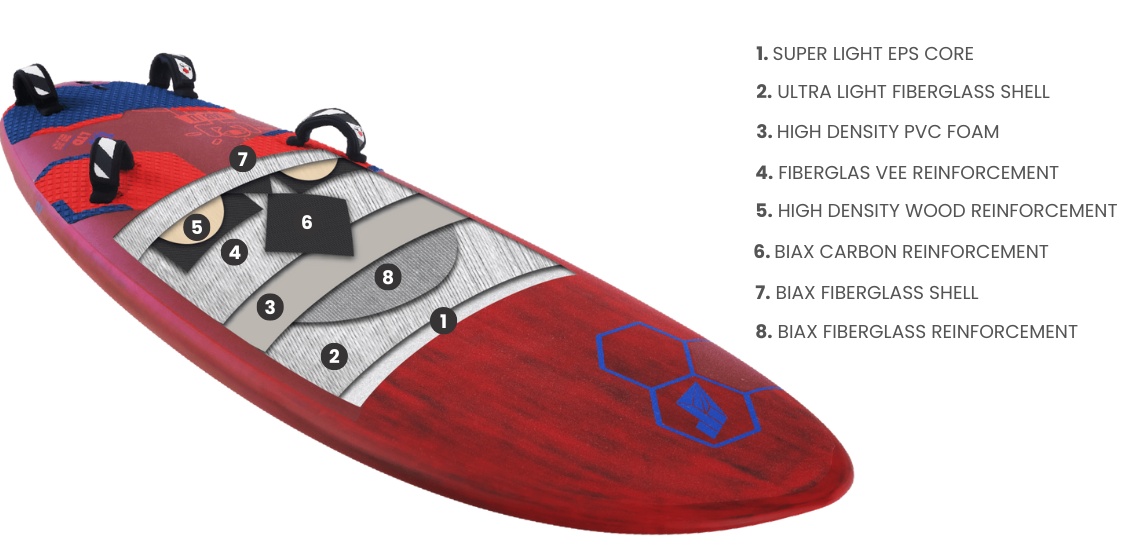 Dzięki niskiemu rockerowi, Rocket+ zapewnia wczesną moc planowania i wyjątkową kontrolę, nawet podczas wyścigów w silnym wietrze wiatrach i wzburzonej wodzie. Zoptymalizowany V-shape przekłada się na jeszcze bardziej płynne prowadzenie w trudnych warunkach, podczas gdy dodanie niewielkiego V w obszarze rufy zwiększa stabilność przy dużych prędkościach.