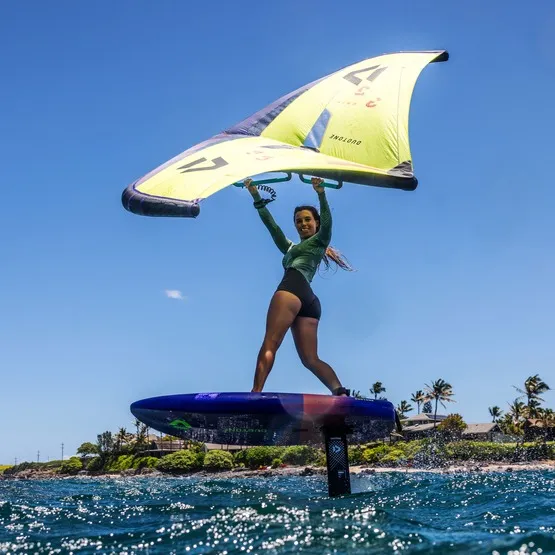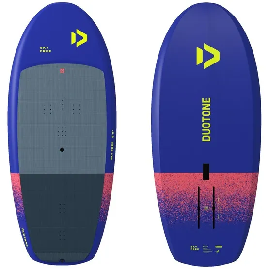Idealna zarówno dla nowicjuszy w Wing Foilingu, jak i zaawansowanych riderów deska Sky Free sprawia, że wejście w lewitację i opanowanie pierwszych manewrów to bułka z masłem. Głównym założeniem podczas projektowania Sky Free 2025 było zwiększenie stabilności podczas startów, co uzyskano poprzez poprawę rozkładu objętości. Podwójna wklęsłość dna przechodząca w płaski profil w tylnej części zapewnia lepsze uwalnianie wody, dzięki czemu starty są tak łatwe i szybkie, jak to tylko możliwe. Szerszy nos i rufa, zastosowane w całej gamie desek Wing Foil Duotone 2025, w połączeniu z niskim rockerem, skutkują większym przyspieszeniem i lepszą stabilnością, ułatwiając wejście w lewitację. Fazowane burty minimalizują ryzyko zahaczenia o wodę podczas głębokiego carvingu, umożliwiając płynniejsze, ciaśniejsze skręty i łatwiejsze sterowanie podczas manewrów.