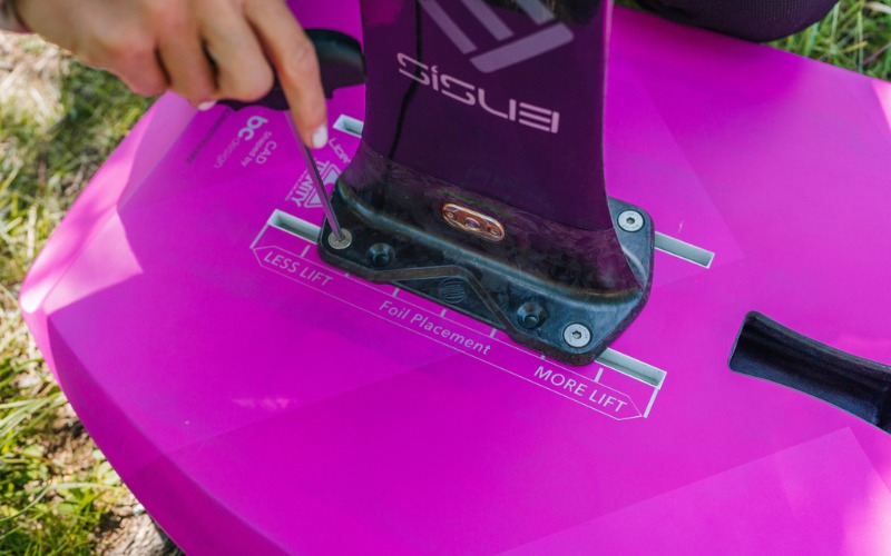 Rączki na dolnej części deski do wygodnego przenoszenia z zamontowanym foilem