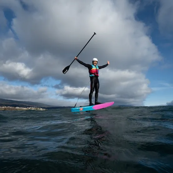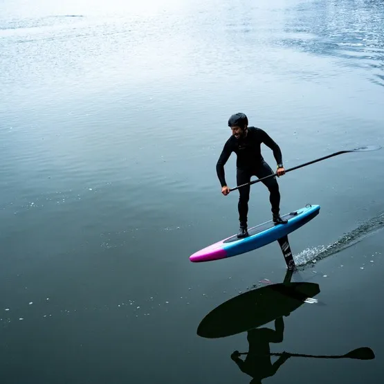 Długi i wąski design pozwala desce na osiąganie prędkości oraz na bardzo wczesne starty przy minimalnym wysiłku, zarówno za pomocą wiosła, jak i winga