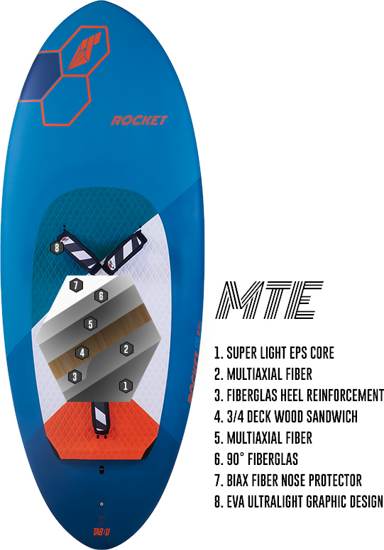 Rocket ma dłuższą rufę w porównaniu do desek Pocket, zapewniając dodatkową długość dla większej stabilności podczas startów. Pomimo tej dodatkowej długości, Rocket jest bardzo reaktywny i zwrotny, ponieważ przednia sekcja jest lekka i kompaktowa. Taka konstrukcja zapewnia oferuje większą stabilność w kierunku przód – tył bez poświęcania zwrotności.