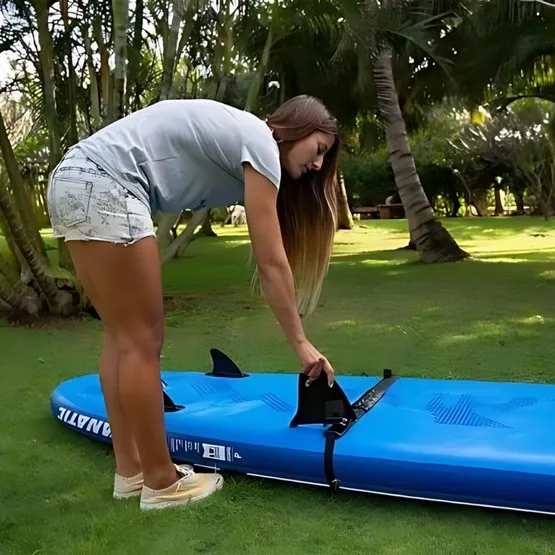 Większość desek SUP oraz desek windsurfingowych nie posiada miecza ani fina centralnego, które zapobiegają niechcianemu dryfowaniu (znoszeniu przez wiatr). Dlatego, jeśli planujesz pływać z żaglem na swojej pompowanej desce SUP, zaopatrz się w dodatkowe stateczniki, które ułatwią Ci utrzymywanie kursu na wodzie. Możesz zamocować je na niemal każdej desce za pomocą specjalnego regulowanego pasa, który oplata deskę.