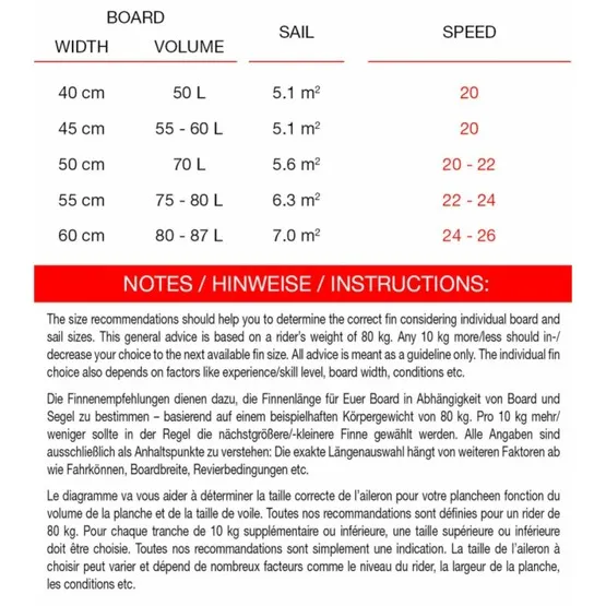Stworzony, by przekraczać barierę 40 węzłów! Model Speed został zaprojektowany do pływania z najwyższymi prędkościami. Wysoki speedowy kształt z charakterystyką niskich oporów połączoną z doskonałą kontrolą. Obowiązkowy statecznik każdego speedsurfera.