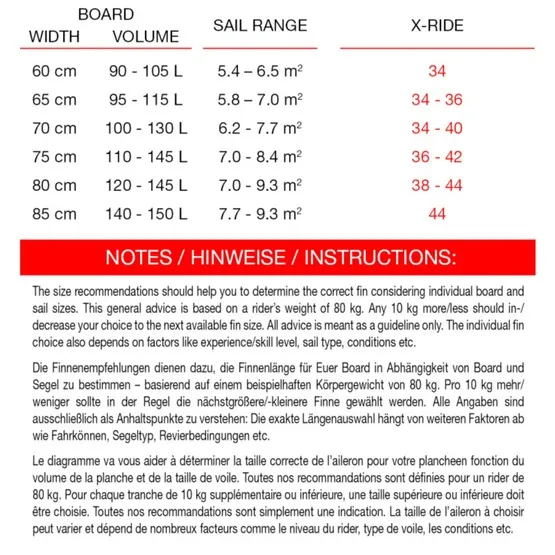 X-Ride jest kontynuacją koncepcji wykorzystanej w modelu X-Wave. Cieńsza końcówka i wycięcie w płetwie zapewniają podobną moc do modelu Ride, a jednocześnie sprawiają, że statecznik jest bardziej zwinny i swobodny.