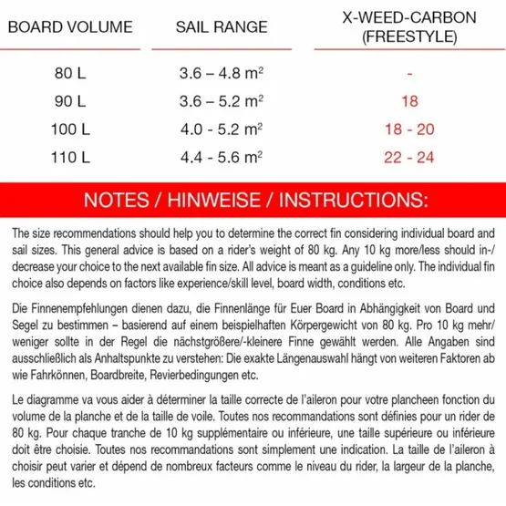 X-Weed Carbon to doskonały fintypu antygrass, który cechuje się lżejszą konstrukcją z włókna węglowego RTM i umiarkowanym flexem. Bardzo szybki i zwrotny model wave do pływania w zarośniętych akwenach. Sprawdzi się do wysokich skoków i ciasnych skrętów. X-Weed-Carbon z łatwością płynie na wiatr i doskonale nadaje się do freestyle’u i desek freestyle-wave, a także jako fin freeride dla mniejszych desek freeride i crossover.