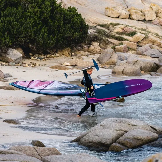 Przedstawiamy najbardziej konkurencyjny foil Slalom & Speed Foil na rynku, wyposażony w wyjątkowo opływowe połączenia. Unikalne połączenie przedniego skrzydła, zabezpieczone systemem czterech śrub, zapewnia niezrównaną stabilność. Dzięki najlepszemu przepływowi wody, konstrukcja minimalizuje opór, zapewniając optymalną wydajność. Zwężające się wgłębienie w fuselage'u gwarantuje najściślejsze połączenie masztu z kadłubem, a najsztywniejszy maszt z włókna węglowego zapewnia doskonałą sztywność.