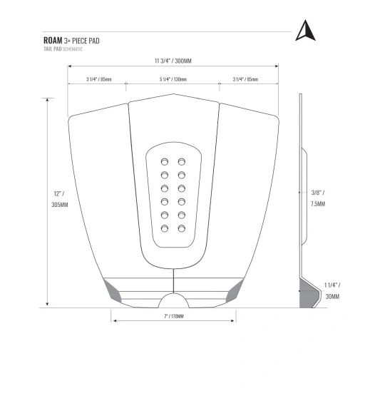 3-częściowy pad ROAM jest najbardziej uniwersalnym ze wszystkich padów. Posiada wybrzuszenie w środkowej części o średniej wysokości, umiarkowany kick tail oraz żłobienie w kształcie diamentu. Ma świetną przyczepność i zapewnia poczucie pewnego oparcia stopy o pad. Jest to uniwersalny pad do większości desek – trzyczęściowy krój pasuje do większości taili.