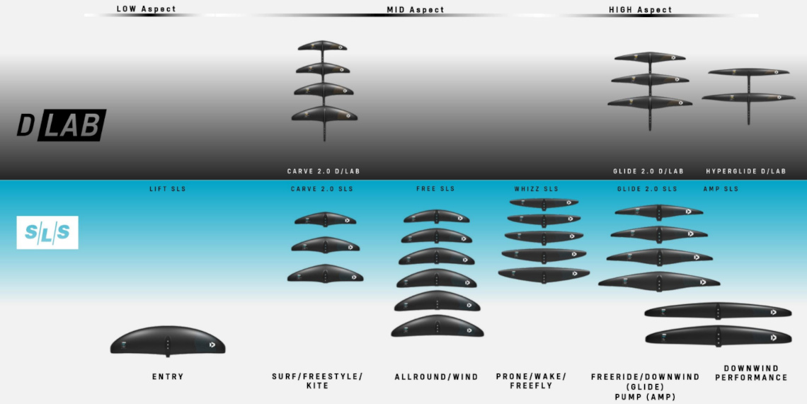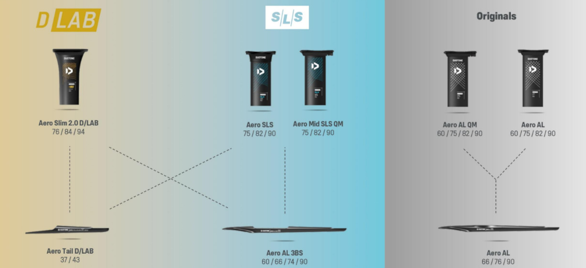 Wszystkie skrzydła D/LAB są kompatybilne wyłącznie z fuselage’m D/LAB. Wszystkie skrzydła z serii SLS są kompatybilne z kadłubami Aero AL i Aero AL 3BS.