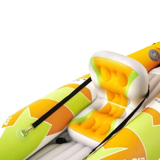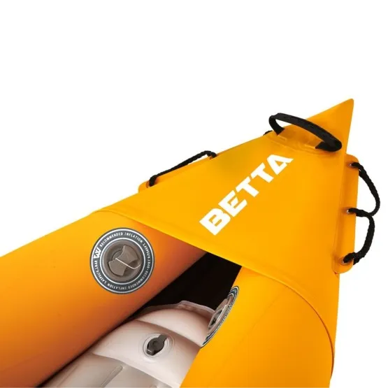 Pompowany, solidny kajak 2-osbowy Betta 412, dedykowany początkującym i średniozaawansowanym kajakarzom. Idealnie sprawdzi się podczas wakacyjnych wypadów nad jezioro czy szybkich wypadów na spływy rzeczne. Jego maksymalna ładowność to 155 kg.