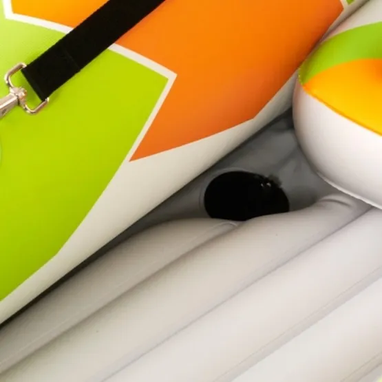 Pompowany trzyosobowy kajak Laxo 380 to świetna propozycja dla miłośników wiosłowania po rzekach i jeziorach. Przeznaczony dla początkujących i zaawansowanych osób, które cenią sobie komfort. Wymiary kajaka i przestrzeń na pokładzie pozwolą zabrać Ci w dłuższą podróż niezbędny ekwipunek. Jego maksymalna wyporność to aż 210 kg.