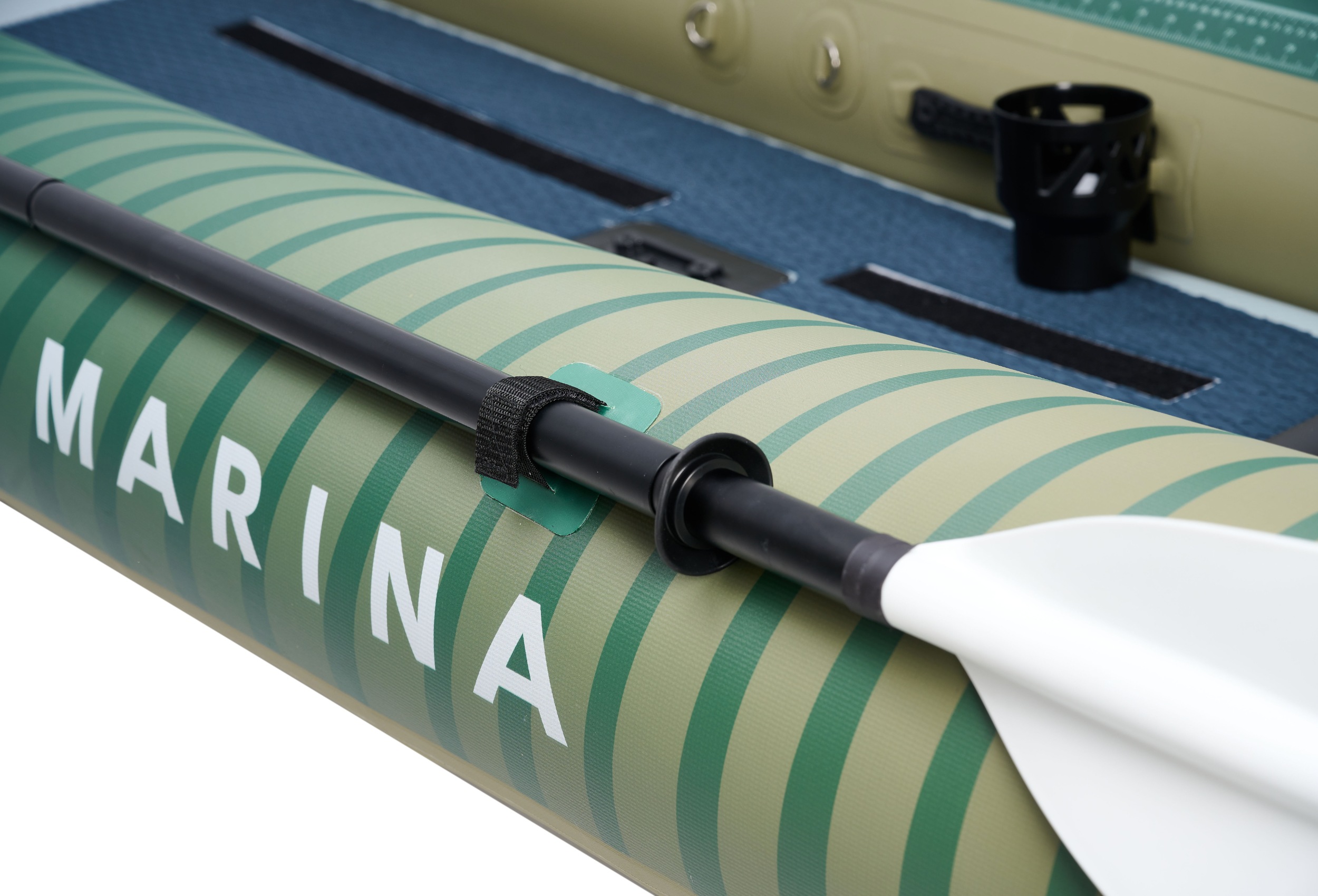 Aqua Marina zadbała o najmniejsze detale, które doceni każdy wędkarz. Pod ręką znajdziesz uchwyt na napój, w kilku miejscach znajdują się bazy montażowe, gdzie możesz dodatkowo przyczepić uchwyt na wędkę, kamery POV czy echosondę. Za siedziskiem możesz umieścić lodówkę wędkarską Aqua Marina Fishing Cooler. Dzięki zamieszczonym na burtach specjalnym rzepom pod wiosła skupisz się tylko i wyłącznie na swojej pasji i otaczającym Cię środowisku.