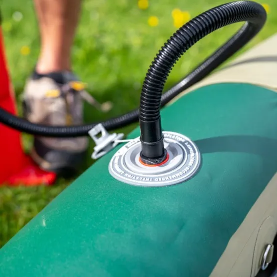 Wysokociśnieniowy zawór umożliwia szybkie pompowanie i spuszczanie powietrza z kajaka