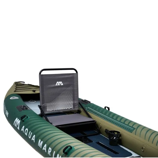 Konstruktorzy zadbali w 100 % o wygodę podczas wędkowania. Kajak wyposażony jest w 1 wygodne, składane krzesełko, ale ma też możliwość przekształcenia go w kajak 2-osobowy. Dla dodatkowego komfortu umieszczono podnóżki. Jego szerokość to prawie 1 metr. Dzięki wyjmowanej, dmuchanej podłodze możesz łowić na stojąco i czuć się stabilnie.