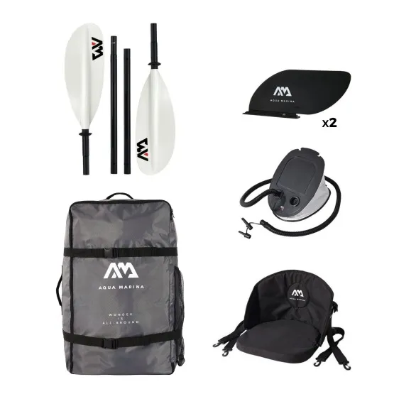 Kajak został wykonany z wielowarstwowego wytrzymałego materiału PVC. Składa się z 3 nadmuchiwanych komór powietrznych. Dwie boczne dają poczucie bezpieczeństwa, a szeroka podłoga zapewnia komfortową przestrzeń oraz dużą stabilność. Aqua Marina wykorzystała Aquashell™ Technology, która sprawia, że materiał jest hydrofobowy i posiada specjalną powłokę chroniącą przed promieniowaniem UV. Dodatkowo technologia Eco-print™, czyli technika druku cyfrowego gwarantująca trwałość grafiki i przyjazność samego procesu dla środowiska.