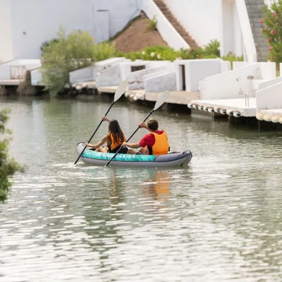 Pompowany dwuosobowy kajak Laxo 320 to świetna propozycja dla miłośników wiosłowania po rzekach i jeziorach. Przeznaczony dla początkujących i zaawansowanych osób, które cenią sobie komfort. Wymiary kajaka i przestrzeń na pokładzie pozwolą zabrać Ci w dłuższą podróż niezbędny ekwipunek. Jego maksymalna wyporność to aż 180 kg.