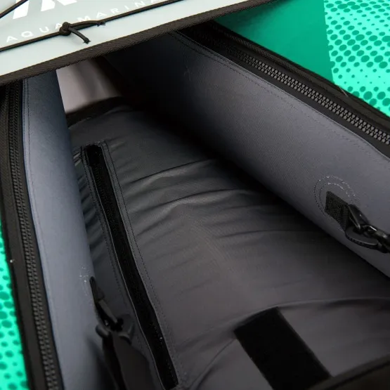 Kajak został wykonany z wielowarstwowego wytrzymałego materiału PVC. Składa się z 3 nadmuchiwanych komór powietrznych. Dwie boczne dają poczucie bezpieczeństwa, a szeroka podłoga zapewnia komfortową przestrzeń oraz dużą stabilność. Aqua Marina wykorzystała Aquashell™ Technology, która sprawia, że materiał jest hydrofobowy i posiada specjalną powłokę chroniącą przed promieniowaniem UV. Dodatkowo technologia Eco-print™, czyli technika druku cyfrowego gwarantująca trwałość grafiki i przyjazność samego procesu dla środowiska.