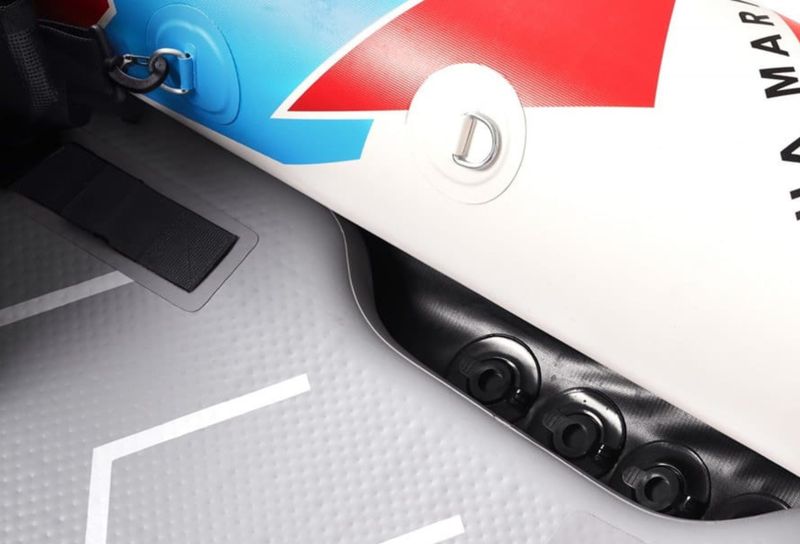 | Długość (cm) | Szerokość (cm) | Waga (kg) | Liczba osób | Wiosła w zestawie | Ładowność (kg) | Konfiguracja komór | Ciśnienie (psi) |