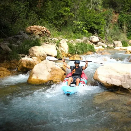 Na rufie znajduje się system linek Cargo bungee, gdzie schowasz niezbędny Ci bagaż. Na przodzie kajaka umieszczono osłonę Spalsh Guard, która uchroni kajak przed wlewaniem się wody na pokład. Jednak podczas raftingu nie ma szans, żeby uchronić w 100% pokład przed zalaniem, dlatego kajak posiada zawory spustowe, dzięki którym szybko spuścisz wodę z dna.
