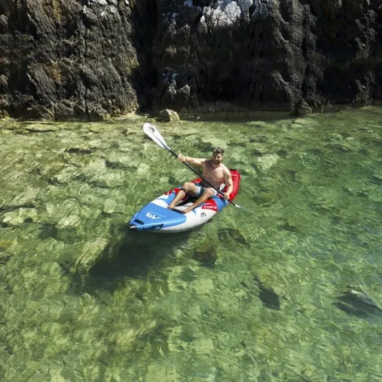 Kajak wyposażony jest w wygodne rączki do przenoszenia. System dwóch wysokowydajnych stateczników zapewni mu stabilność kursu. Kajak wraz z całym wyposażeniem zmieścisz do obszernej torby. Pozwoli Ci ona wygodnie przetransportować Twój sprzęt nad wodę.
