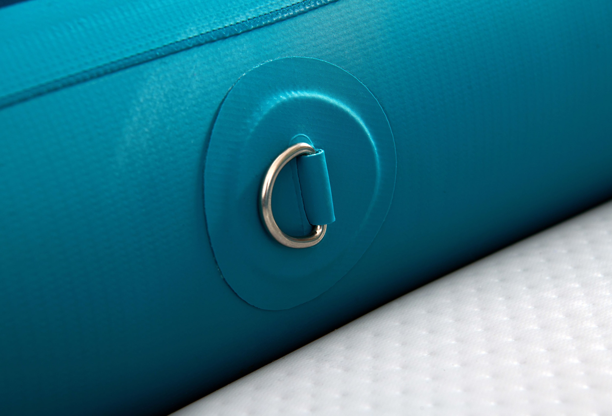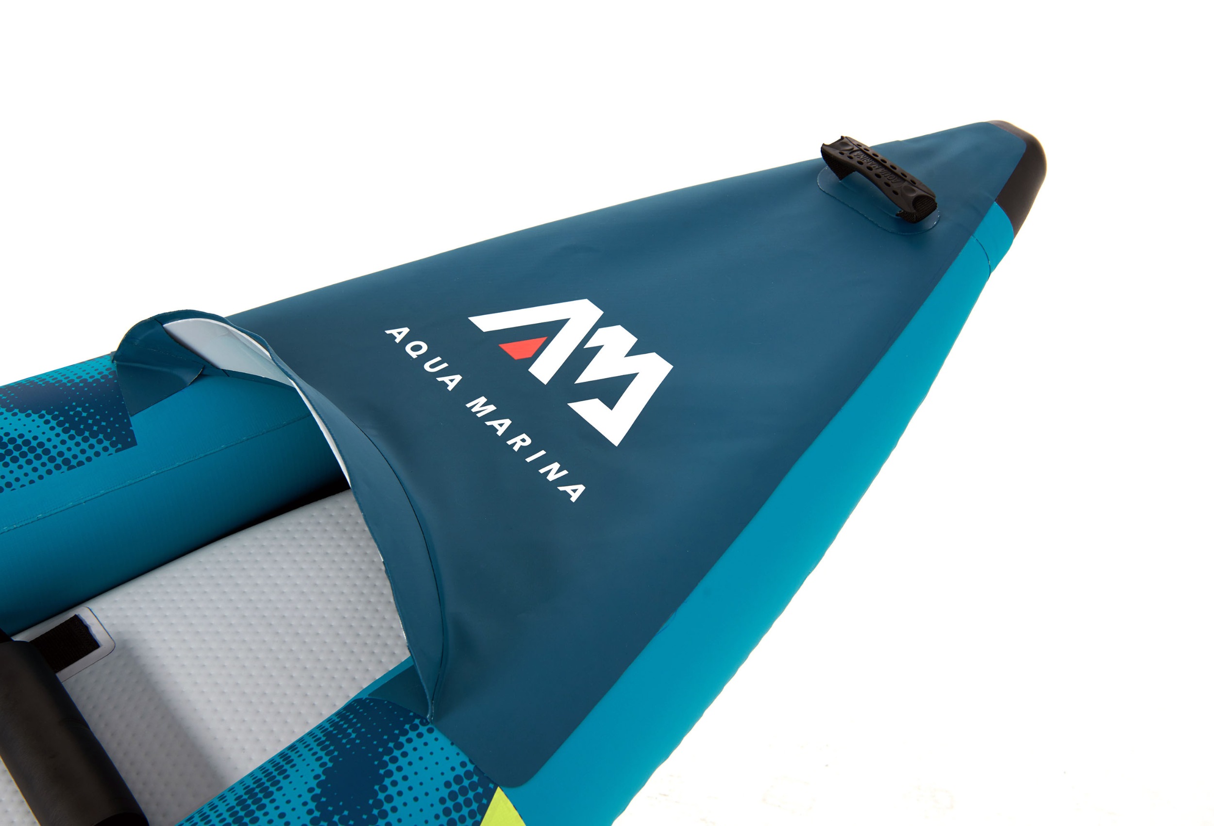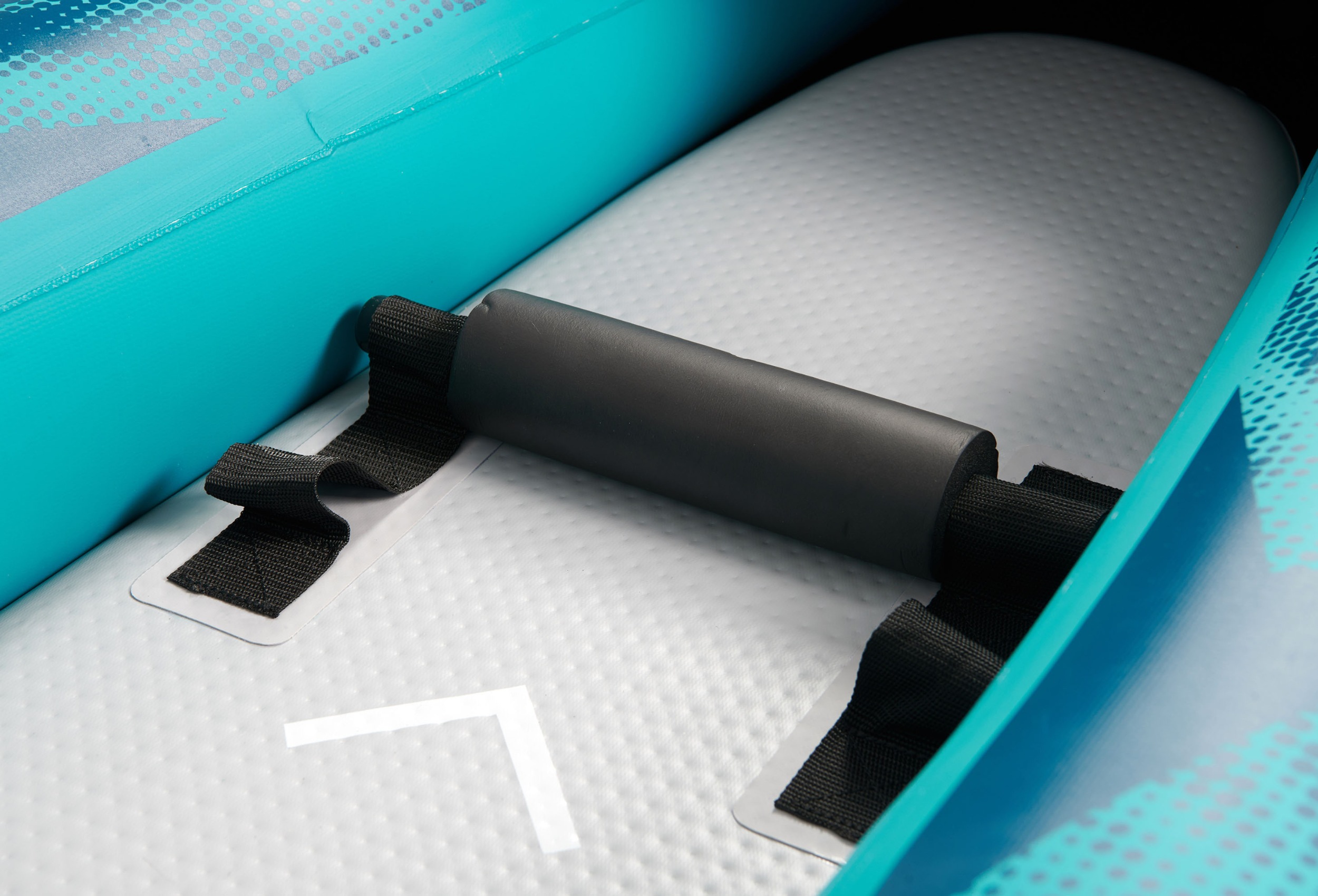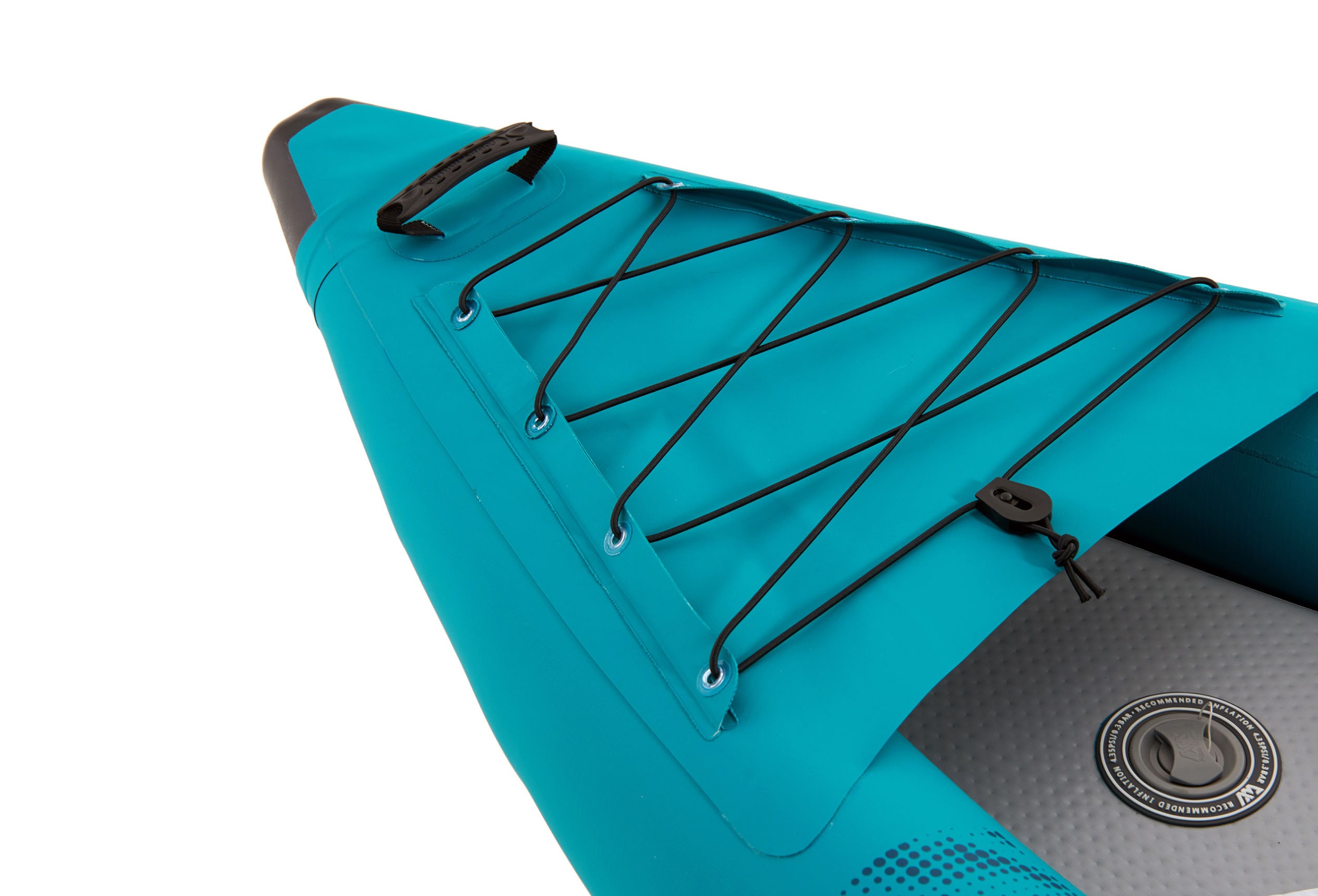 Na rufie znajduje się system linek Cargo bungee, gdzie schowasz niezbędny Ci bagaż. Na przodzie kajaka umieszczono osłonę Deck Shield™, która uchroni kajak przed wlewaniem się wody na pokład. Jednak podczas raftingu nie ma szans, żeby uchronić w 100% pokład przed zalaniem, dlatego kajak posiada zawory spustowe, dzięki którym szybko spuścisz wodę z dna. Kajak wyposażony jest w wygodne rączki do przenoszenia. System dwóch wysokowydajnych stateczników zapewni mu stabilność kursu.