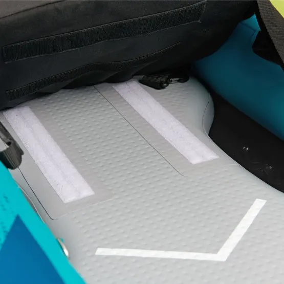 Kajak wyposażony jest w 2 wygodne, regulowane siedziska, które w łatwy sposób zamontujesz do uchwytów D-ring, Twoje plecy będą miały solidne oparcie. Dla większego komfortu podczas wiosłowania dodane są wyjmowane podnóżki.