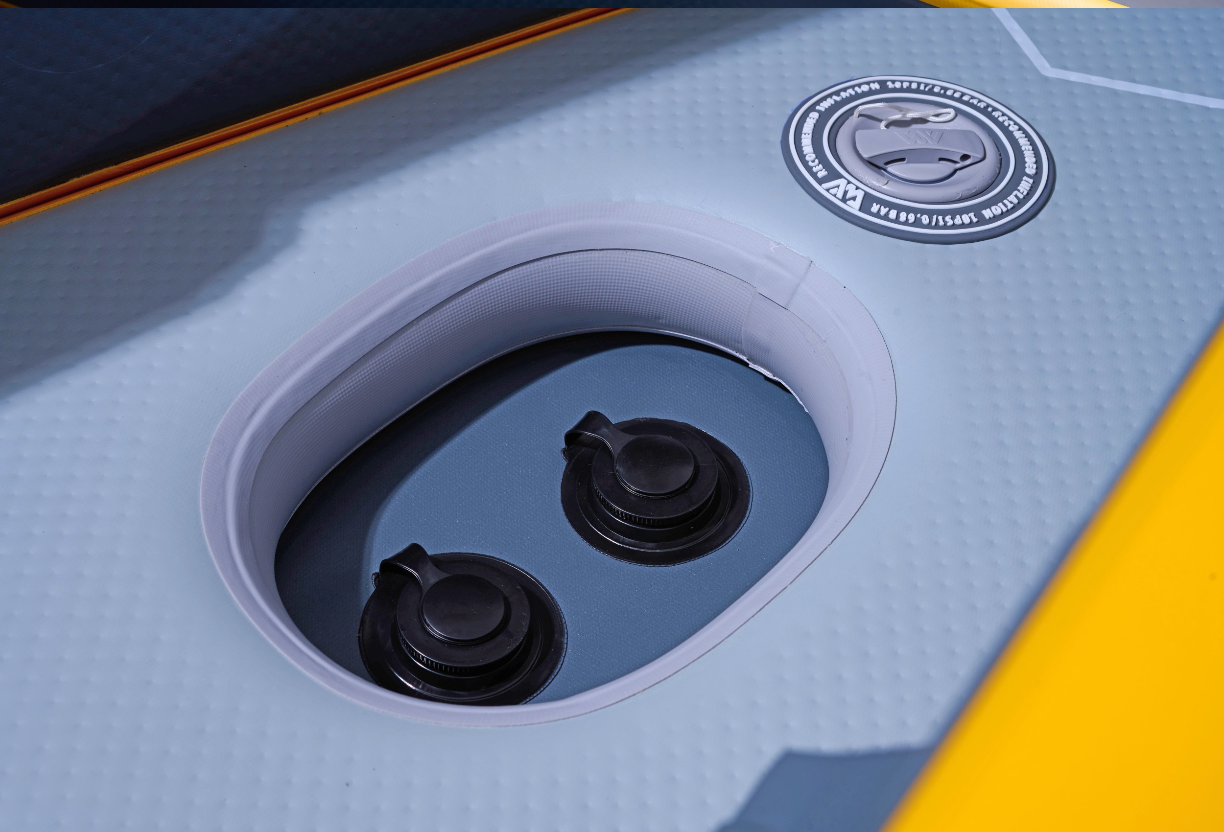 Wysokociśnieniowy zawór umożliwia szybkie pompowanie i spuszczanie powietrza z kajaka