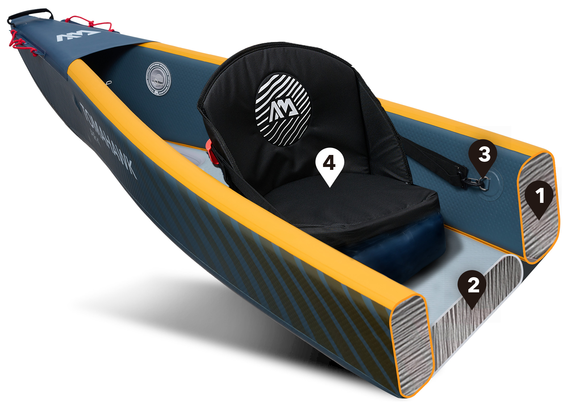 Komory boczne oraz podłogowa o grubości 7 cm zostały wykonane w technologii Drop Stitch Light, to właśnie ona nadaje kajakowi sztywności porównywalnej z tradycyjnymi kajakami, stabilności oraz lekkości. Jego waga to nieco ponad 16 kg.