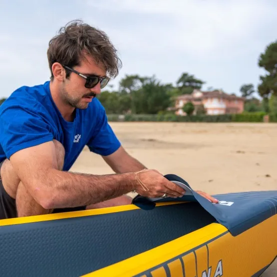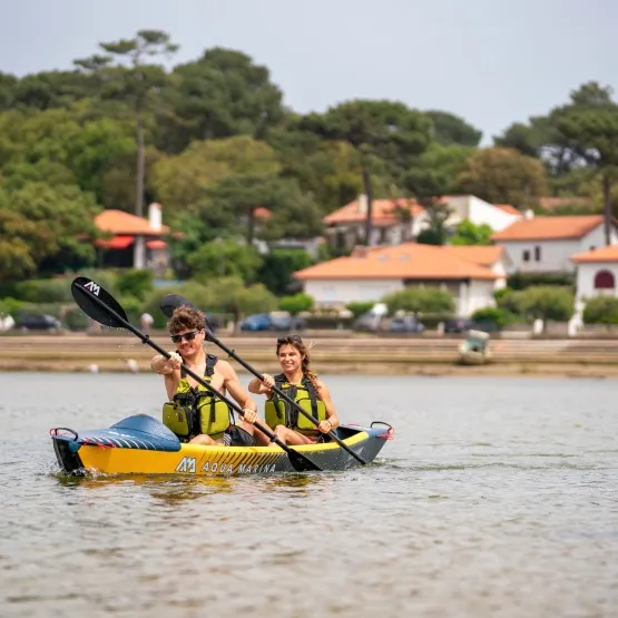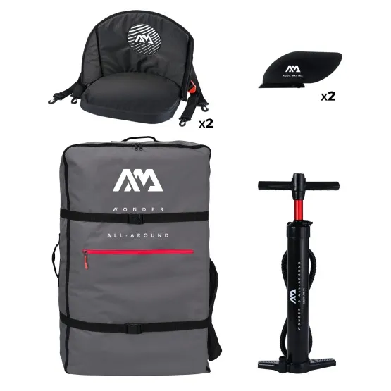 Aqua Marina zadbała w 100% o wygodę. W zestawie znajdziesz 2 regulowane siedziska kajakowe z wysokim oparciem, gąbczastą poduszką i wieloma kieszeniami do przechowywania, 2 regulowany podnóżki oraz pokład pokryty pianką EVA dla komfortu podczas wiosłowania. Transportowanie kajaka nad wodę ułatwią uchwyty do przenoszenia umieszczone na dziobie i rufie.