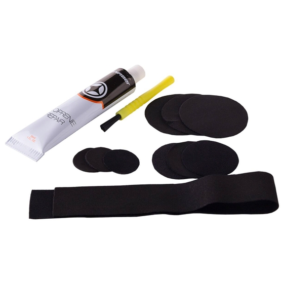 Z zestawem do naprawy neoprenu marki Unifiber możesz z łatwością załatać wszystkie przetarcia, przecięcia i dziurki w Twojej piance. Zawiera on łatki neoprenowe różnego kształtu i rozmiaru oraz czarny specjalistyczny klej, elastyczny i bardzo wytrzymały. Uszczerbek pianki może zdarzyć się w każdym momencie, warto go naprawić od razu, aby dziurka/przecięcie nie powiększało się. Będziesz mógł spędzić więcej czasu na wodzie w ulubionym kombinezonie, kamizelce czy rękawiczkach.