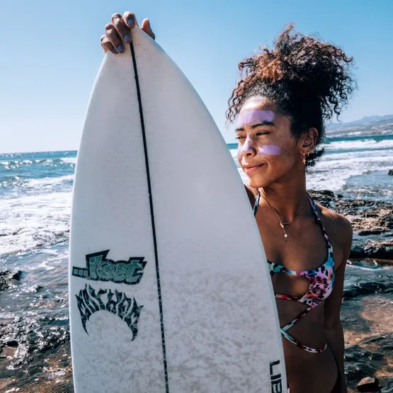 Surf Stick ma nietłustą konsystencję, dzięki której aplikacja jest niezwykle łatwa i przyjemna. Jest trwały i wodoodporny – nie spływa z powodu wilgoci, dzięki czemu idealnie nadaje się do intensywnych aktywności na świeżym powietrzu. Posiada delikatne matowe wykończenie, subtelny zapach i energetyzujące letnie kolory, dzięki którym podkreślisz swój surferski look.
