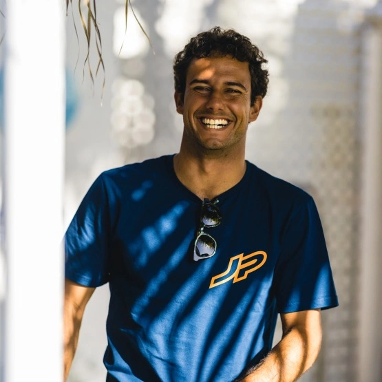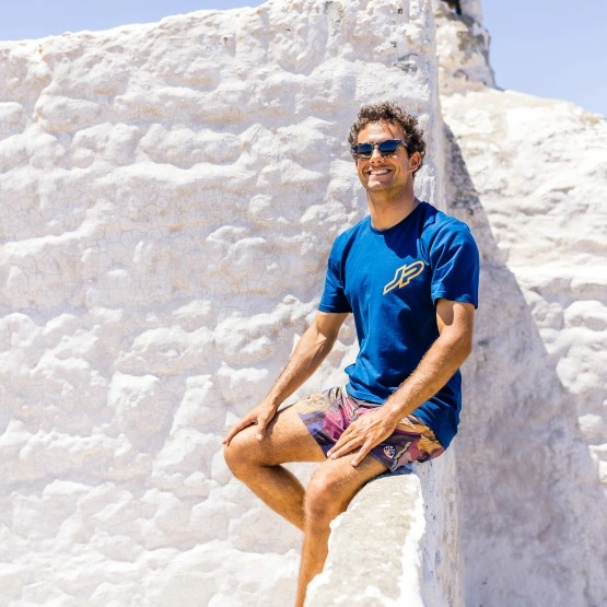 Męska koszulka JP-Australia The Original w kolorze niebieskim. Wykonana w 100% z bawełny, która jest miękka, lekka i oddychająca, co sprawia, że ta koszulka jest wygodna w noszeniu, zwłaszcza w ciepłe dni.