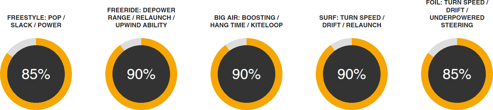 Choć ten latawiec można postrzegać jako wykonany z standardowych materiałów, szybko o tym zapomnisz, gdy wprowadzisz go w powietrze. Dzieli wiele cech z innymi latawcami Moto X, takimi jak Panele Pure Form i ISC. Ten latawiec to bilet do jednych z najlepszych momentów, jakie przeżyjesz na wodzie.