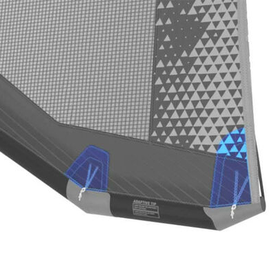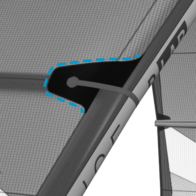 Taka konstrukcja zapewnia kontrolowany rozkład sił pomiędzy tubą poprzeczną, a krawędzią natarcia. Poprzeczki są w 100% zintegrowane z tubą główną dzięki elastycznej lince Dyneema, która zapewnia mocniejsze napięcie i czysty profil
