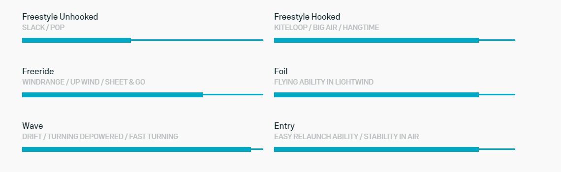 Ogromny górny i dolny zakres wiatrowy umożliwiają jazdę w najbardziej porywistych i często zmieniających się warunkach wiatrowych bez konieczności zmiany latawca