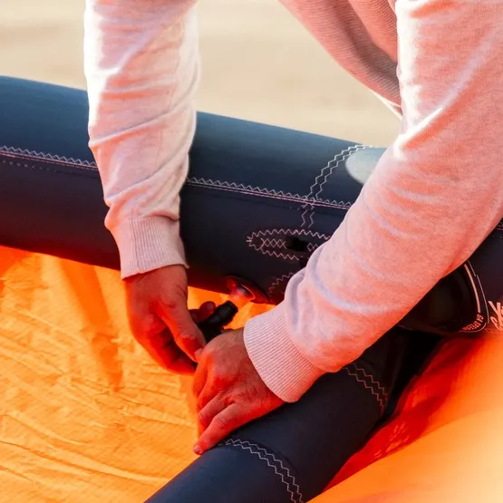 Łączniki między tubami o podwójnym przekroju pozwalają szybko i wygodnie napompować latawiec za pomocą tylko jednego zaworu. Nieskomplikowana, lekka konstrukcja złączy zapewnia szybkie pompowanie, łatwą obsługę i bezpieczeństwo na wodzie.