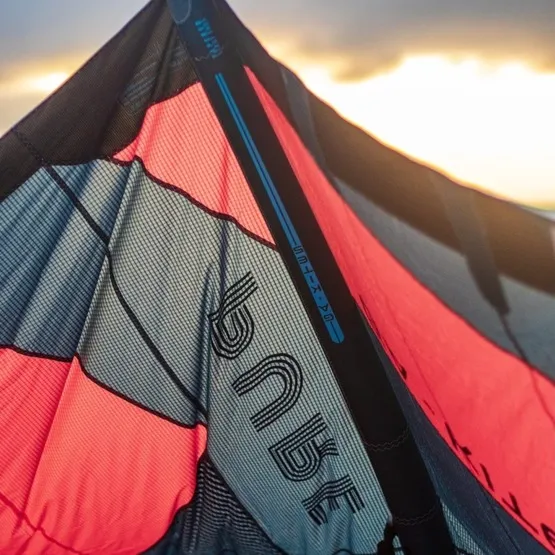 Latawiec zbudowany jest z nowoczesnych materiałów – ForceTec Dacron w szkielecie krawędzi natarcia i tubach poprzecznych. Zapewnia sztywność konstrukcji, niską wagę i długowieczność, co bezpośrednio przekłada się na precyzję sterowania. Poszycie z materiału VoltNova (potrójny ripstop od Teijin) jest lekkie, ale wyjątkowo odporne na rozciąganie – dzięki temu latawiec utrzymuje idealny kształt i równomiernie rozkłada napięcie. Dodatkowo wzmocniony VoltNova+ double ripstop zastosowany w tylnej krawędzi zwiększa jej sztywność i trwałość, jednocześnie utrzymując niską wagę całej konstrukcji. Mini listwy na uszach przy krawędzi spływu oraz przemyślane ułożenie profilu aerodynamicznego wspierają stabilność lotu, nawet w nierównym wietrze.
