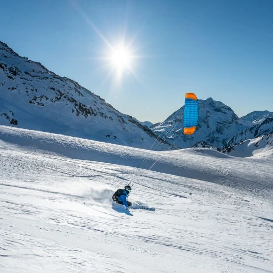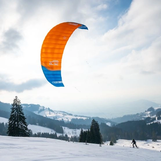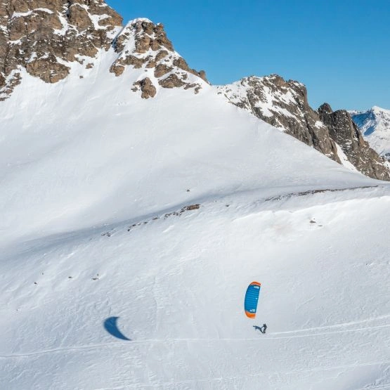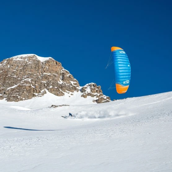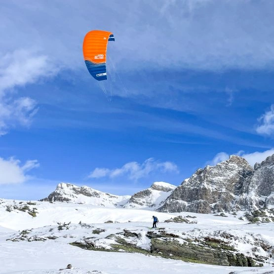 Idealny do snowkitingu, Ibex zapewnia silny ciąg pod górę, umożliwiając łatwe wspinanie się po zboczach